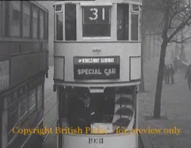 Double Deck 'Pullman' service through Kingsway tramway tunnel inaugurated by the L.C.C. 1931.