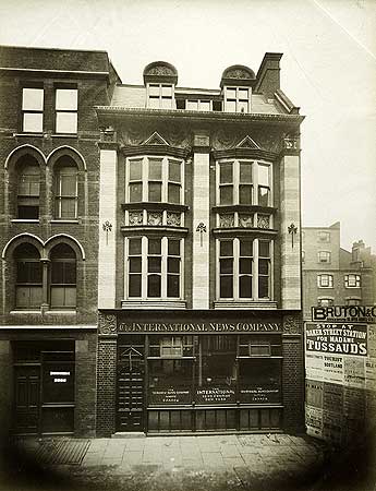 The facade of the International News Company building, Breams Buildings, where Kath worked. Photo circa 1889.